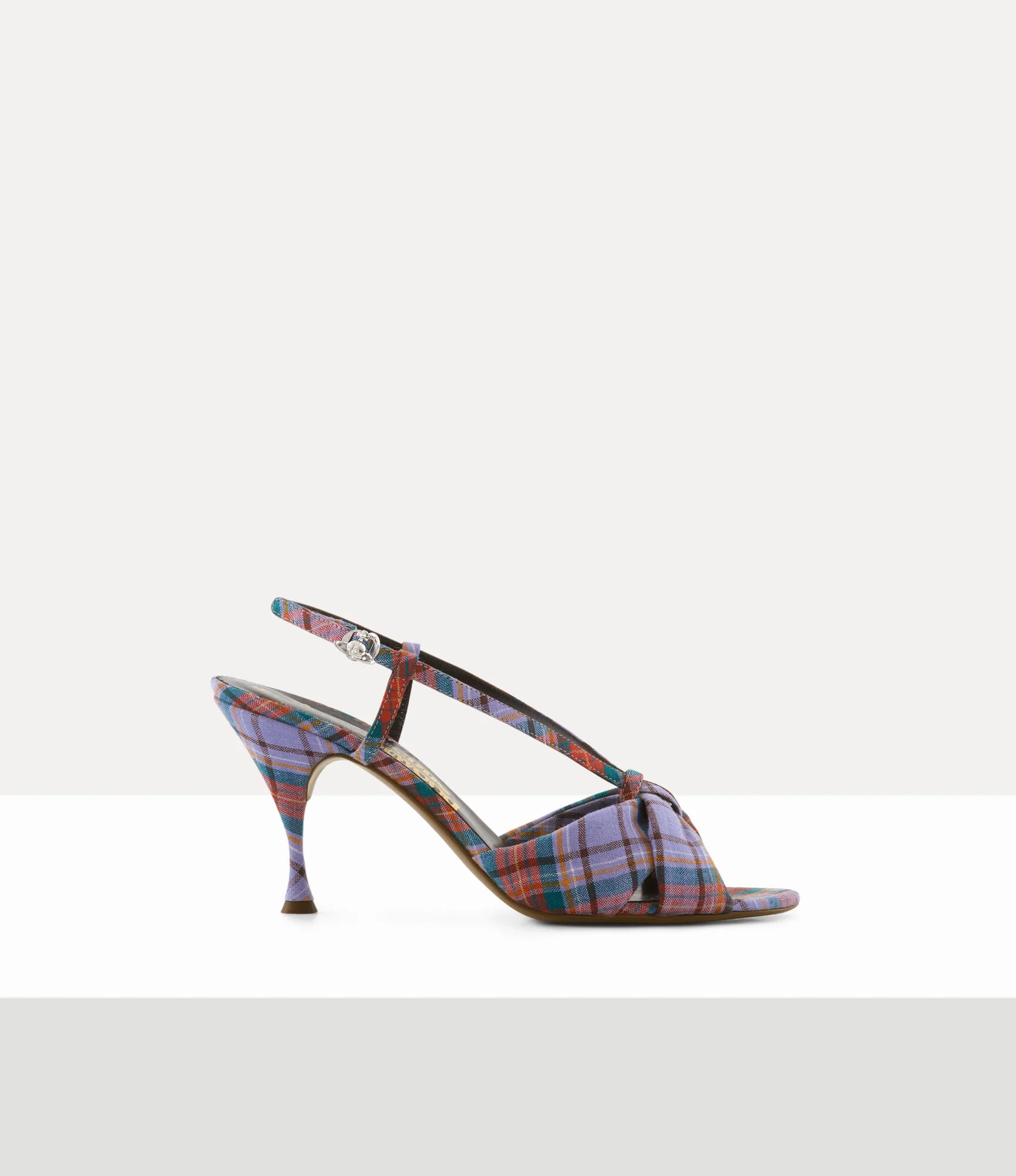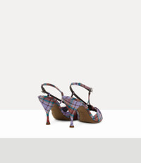 This season's Marylin sandals are offered in the bold 'Louth Tartan' motif, characterised by delicate cross-over straps that frame the open-toe silhouette. Elevated on a sculpted stiletto heel with a curved profile, the style is finished with an adjustable silver-tone orb-shaped buckle. Code: 73050007W-W01C6--MULTI - Features a slingback strap - Buckle fastening - Adjustable orb-shaped buckle - Open-toe design - Cross-over front straps - Mid-stiletto heel - Curved heel silhouette - Lightly cushioned insole - Slim outsole - Heel height: 7.5mm - Made in Italy COMPOSITION - Main material: 100% viscose - Outsole material: 100% calf leather