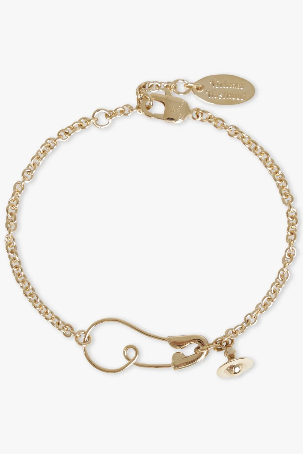 - Fabrication: 100% Brass - Features a lobster fastening - Dangling orb motif - Delicate trace chain - Lightweight design - Engraved oval tag Measurements Weight 4.03g Total chain length: 17.5cm Pendant height 1.8cm, width 2.3cm