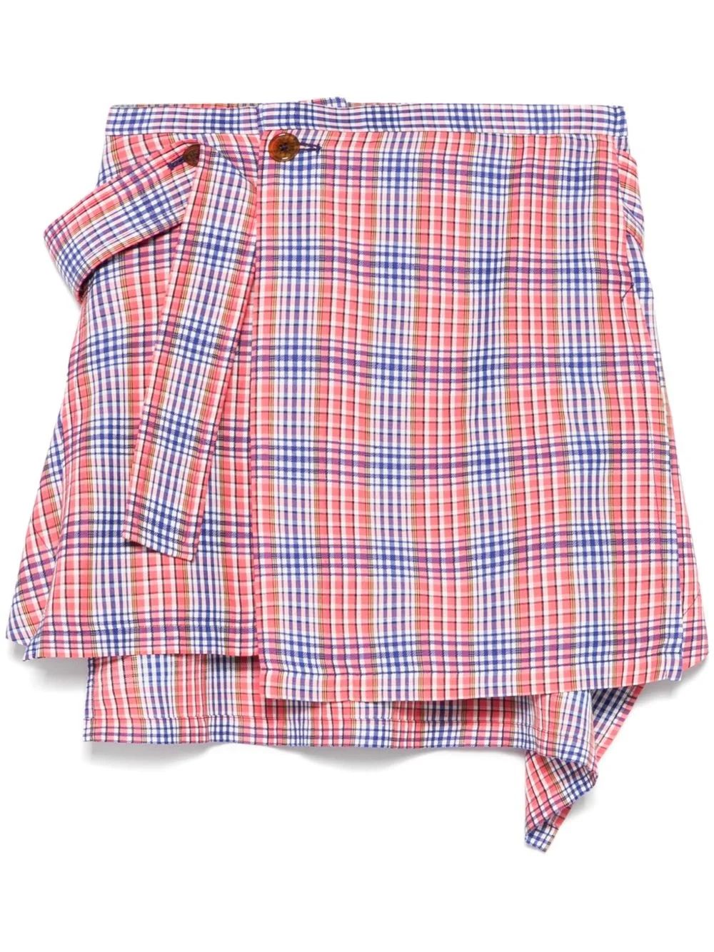 Meghan skirt Highlights - Bright red - Side button fastening - Strap detailing - Logo-jacquard lining - Plaid check pattern Made in Italy Composition Lining: Viscose 100% Outer: Viscose 100% SIZE & FIT Model measurements Height 5 ft 11 in(1.8 m) Bust/Chest 31.49 in(80 cm) Hips 36.61 in(93 cm) Waist 24.4 in(62 cm) FittingInformation Designed with an asymmetric hem, this skirt is intended to be worn just below the waist The partially elasticated waistband offers increased movement and comfort at the waist Made from a midweight non-stretch fabric