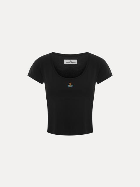 Our Micro Lollo t-shirt features a cropped cotton silhouette, complete with short sleeves and a low scoop neckline. The piece receives a multi-coloured orb embroidery on the centre of the chest, which symbolises tradition, encircled by the celestial rings of Saturn, representing the future. Code: 1G01000Y-J001M--BLACK - Features ribbed trims - Fits true to size, please take your normal size - Orb embroidery - Step-hemline - Tonal stitching - Lightweight - Non-stretch fabric - Fitted silhouette - The model is 5'11/180cm and is wearing a size S COMPOSITION - Main material: 100% cotton
