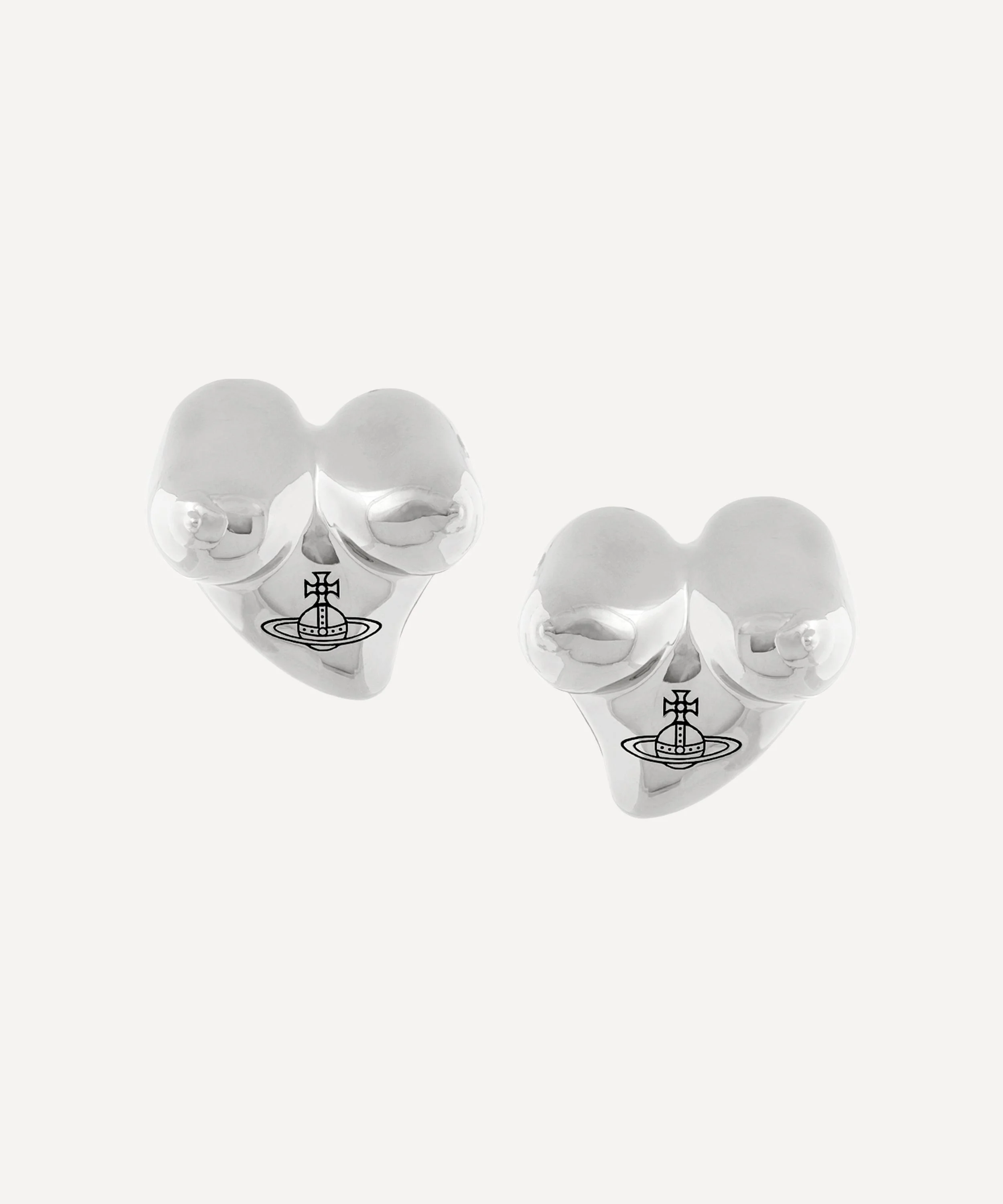 DETAILS Stud earrings Platinum-tone brass Heart-shaped design Orb motif in black patina Post fastening COMPOSITION & SIZE Brass Dia: 3cm