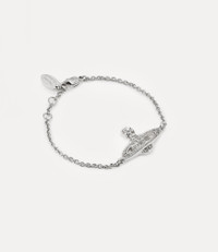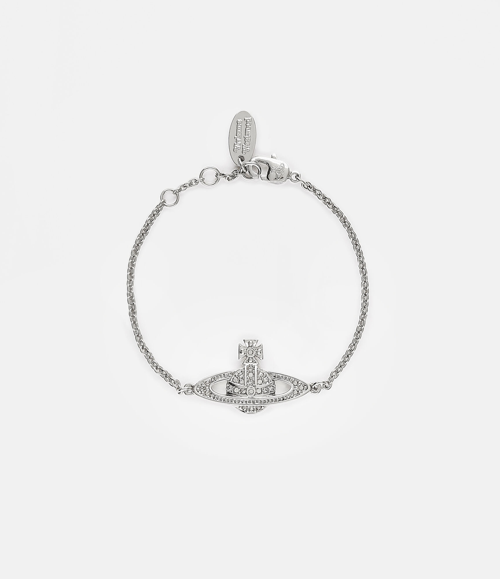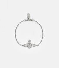 The Mini Bas Relief Chain Bracelet forms part of our classic collection using the Vivienne Westwood Orb and Saturn ring as their inspiration. This logo represents 'taking tradition (the Orb) into the future (Saturn ring)' thus figuratively describing the work of Vivienne Westwood. Encrusted with Swarovski crystals in an imitation rhodium setting, the Orb sits in the middle of a silver chain. Material Brass Code: 61020051W110W110 Details & Features Chain length: 17.5cm Orb dimensions: H 1.8cm x W 2.7cm