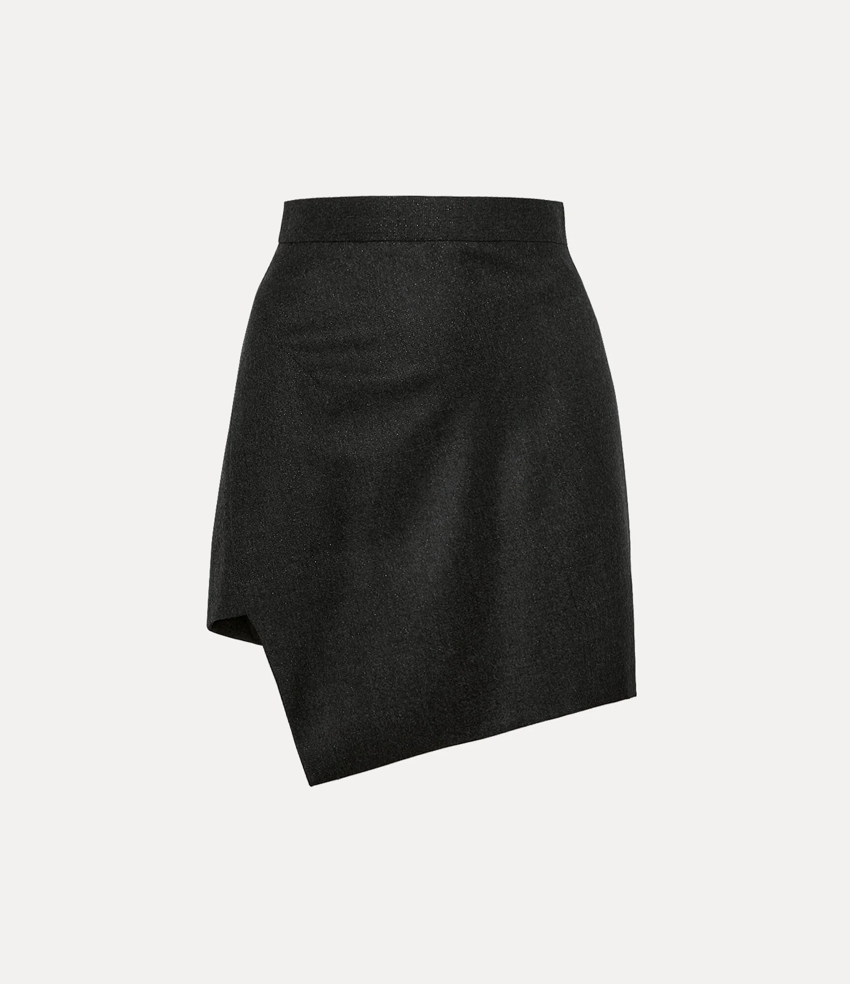 Our Mini Infinity skirt features a wool profile, delicately woven with a metallic brushed finish. The piece offers a wrap-style front that fastens with a concealed button, complete with a mid-rise waistband that falls into an asymmetric A-line shape. Code: 1K01002C-W0173--CHARCOAL - Features a mini-length silhouette - Fits true to size, please take your normal size - Button fastening - Orb-jacquard lining - High-rise waist - Tailored front and back darts - Tonal stitching throughout - Made in Italy COMPOSITION - 98% Virgin wool - 1% Polyamide - 1% Metallic fibre