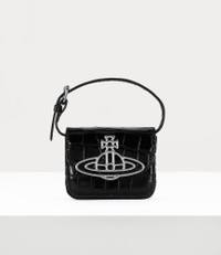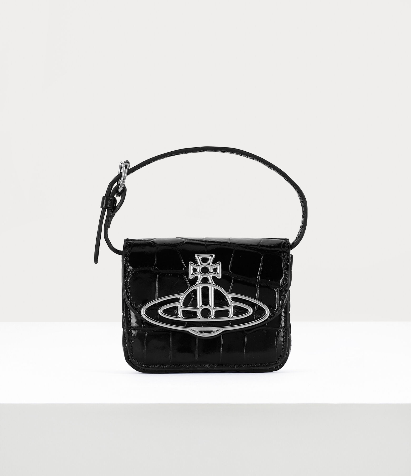 The Crocodile Mini Linda bag in black leather features a croc embossed texture and our thin line orb plaque on the front flap. Code: 8050889589419 - Magnetic stud fastening - Polished hardware - 'Broken Pinstripe' cotton lining - Removable top handle - Buckle detail - Made in Italy - Height 8cm, width 9cm, depth 4cm when open COMPOSITION - 100% Calf leather - The leather used has been awarded against the LWG Environmental Auditing standard designed to provide a measure of compliance and performance capabilities of the leather business.