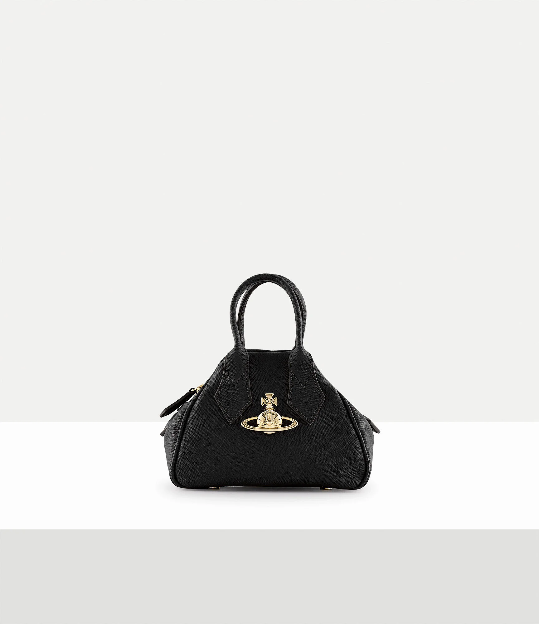 The Mini Yasmine Chain bag pays homage to the ‘Yasmine' silhouette from the Autumn-Winter 1987/1988 Time Machine collection. This smaller rendition of our classic handbag features a soft PU silhouette, complete with a raised orb plaque at the front - synonymous with Vivienne's vision of launching tradition into the future. Code: 8050889917908 - Features a saffiano finish - Top-handle silhouette - Fully lined - Tonal stitching - Top-zip fastening - Gold-tone hardware - Measurements: height 13cm, width 11cm, depth 7cm - Made in Italy COMPOSITION - 16% Polycotton - 30% RePolycotton - 54% Polyurethane