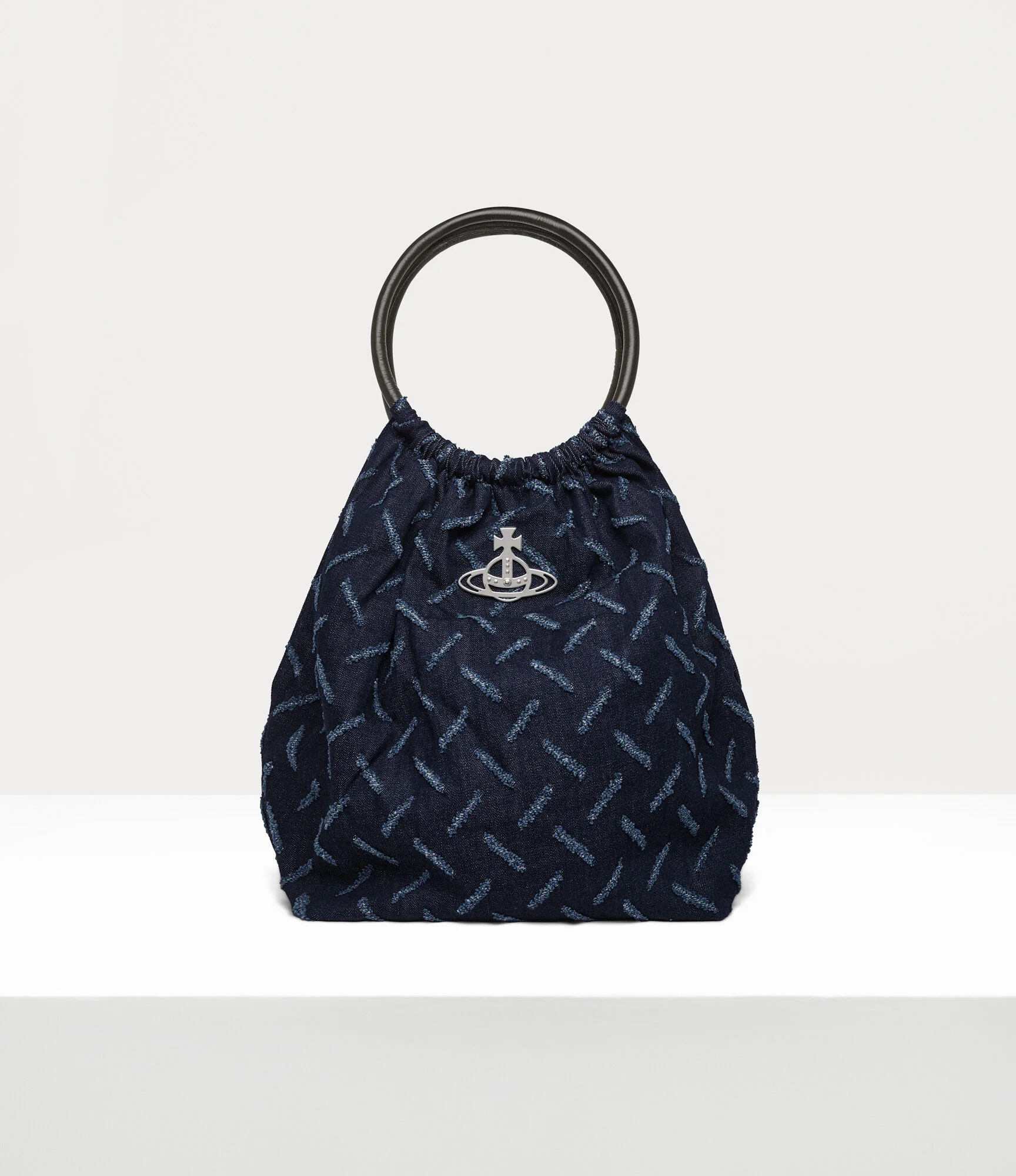 Our Molly Large Shoulder bag is adorned with this season's ‘Ripped’ denim motif, recalling our Spring–Summer 1991 collection, 'Cut, Slash and Pull'. Inspired by the 16th-century tradition of slashing and pricking garments to reveal the layers beneath, the design is complete with a silver-tone 'Line Orb' motif at the front. Code: 8053195303748 - Features a drawstring top - Ruched opening - Top-handle design - Soft structure - Slouchy finish - Orb plaque - Compact size - Tapered shape - Made in Japan COMPOSITION - Main material: 100% cotton - Hardware: silver-tone brass - Handles: soft leather
