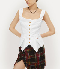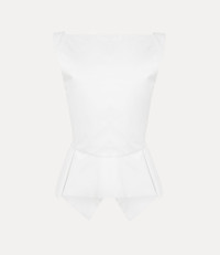 Our Monday vest follows an archive silhouette, first presented in the Spring-Summer 1997 collection, 'Viva la Bagatelle'. The piece offers a classic square neckline and softly falls into a flared peplum hemline that gathers into delicate pleats and an inverted V-front design. Code: 15050012-W009Q--WHITE - Features a long-line silhouette - Fits true to size, please take your normal size - Wide shoulder straps - Pleated side panels - Small embroidered orb logo - Darting detail - Lightweight, structural fabric - Interior lining - Sleeveless design - Model is 5'9/177cm and is wearing a size 40 - Made in Italy COMPOSITION - 100% Cotton