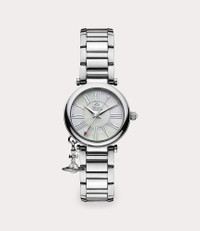 Designed with an iridescent dial and decorated with tonal Roman numeral indexes, the Mother Orb watch is coated with a silver-tone plating. Made in England from polished stainless steel, it features a hanging orb and fastens with a butterfly buckle. Please note that this watch comes in a gift box and has a two-year guarantee. Material 100% Stainless Steel Code: VV006PSLSLXXX0SIL Details & Features Face Diameter: 3.2cm Strap Width: 1.7cm