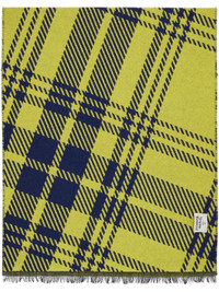 Rectangular wool twill scarf. · Jacquard check pattern throughout · Jacquard logo at face and back face · Logo patch at back face · Fringed detailing at ends · L78.75" x W19.75" Supplier color: Navy blue 100% wool. Made in Italy 252314F028001