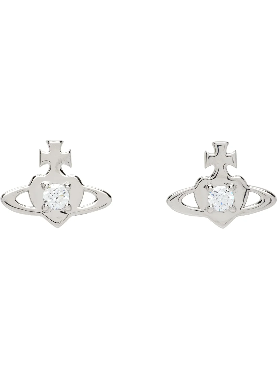 Pair of stud earrings in sterling silver. · Logo and cubic zirconia stone at face · Post-stud fastening · H0.25" x W0.5" Supplier color: Platinum/White cz 925 sterling silver, cubic zirconia. Made in Thailand 252314F022026