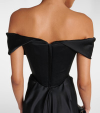Product Details - Material: 73% acetate, 27% viscose - Care instructions: dry clean - Made in the UK - Designer color name: Black - Item number: P00887547 Size & Fit - True to size - Off-the-shoulder - Internal boned corset for support - Cinched waist - Non-stretchy fabric - The model seen in the picture is 178cm-5'10" and wearing a size UK 8