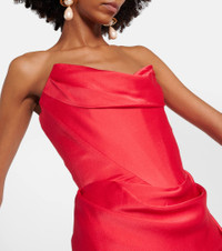 Product Details - Material: 73% acetate, 27% viscose - Care instructions: dry clean - Made in the UK - Designer color name: Red - Lining: 100% silk - Comes with garment bag - Item number: P00954892 Size & Fit - True to size - Strapless - Internal boned corset for support - Cinched waist - Non-stretchy fabric - slit length 58,0cm-23" - The model seen in the picture is 178cm-5'10" and wearing a size UK 8