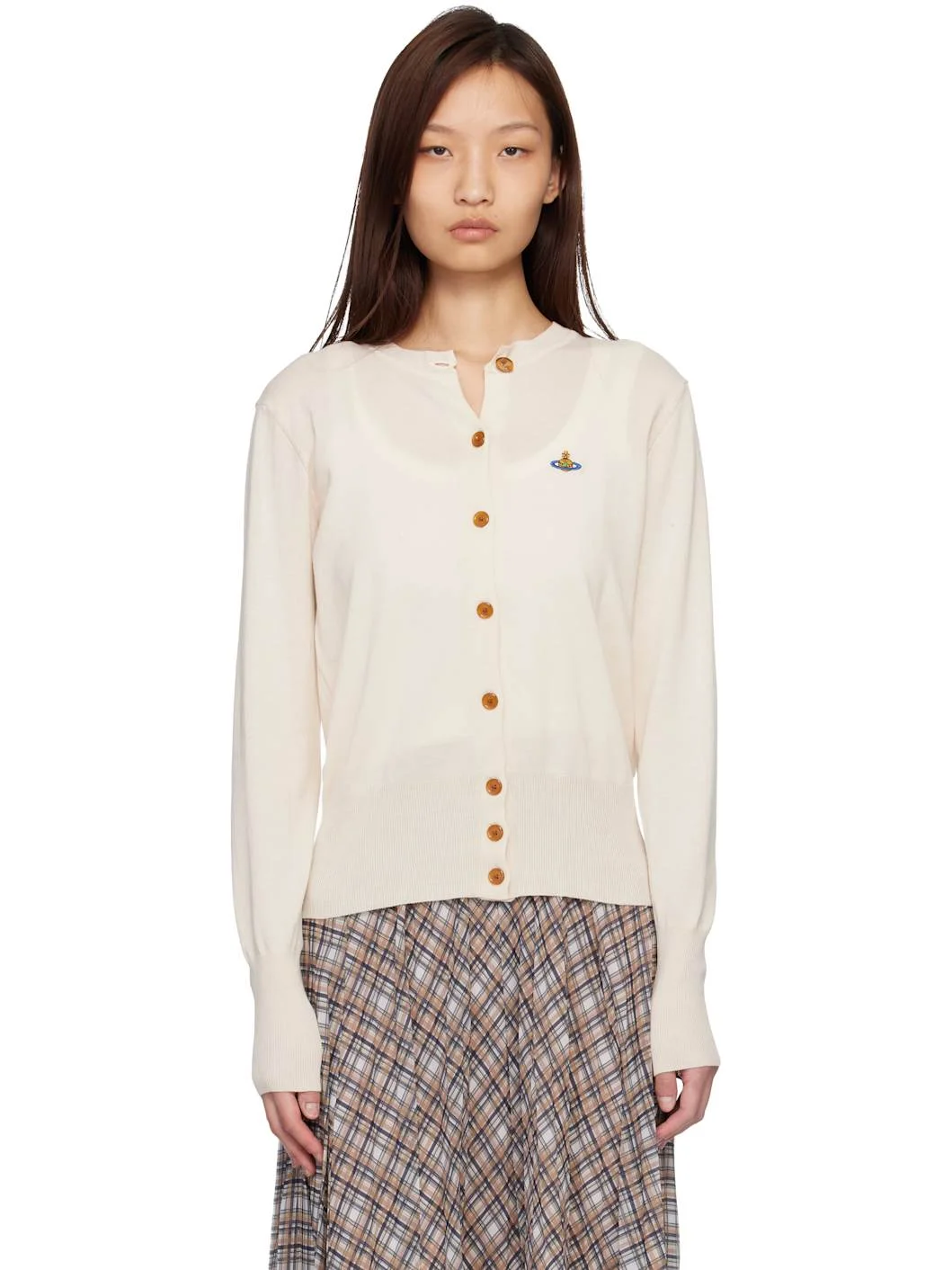 Knit organic cotton cardigan. · Rib-knit crewneck, hem, and cuffs · Button closure · Logo embroidered at chest Supplier color: Cream 100% cotton. Made in Italy 261314F095022