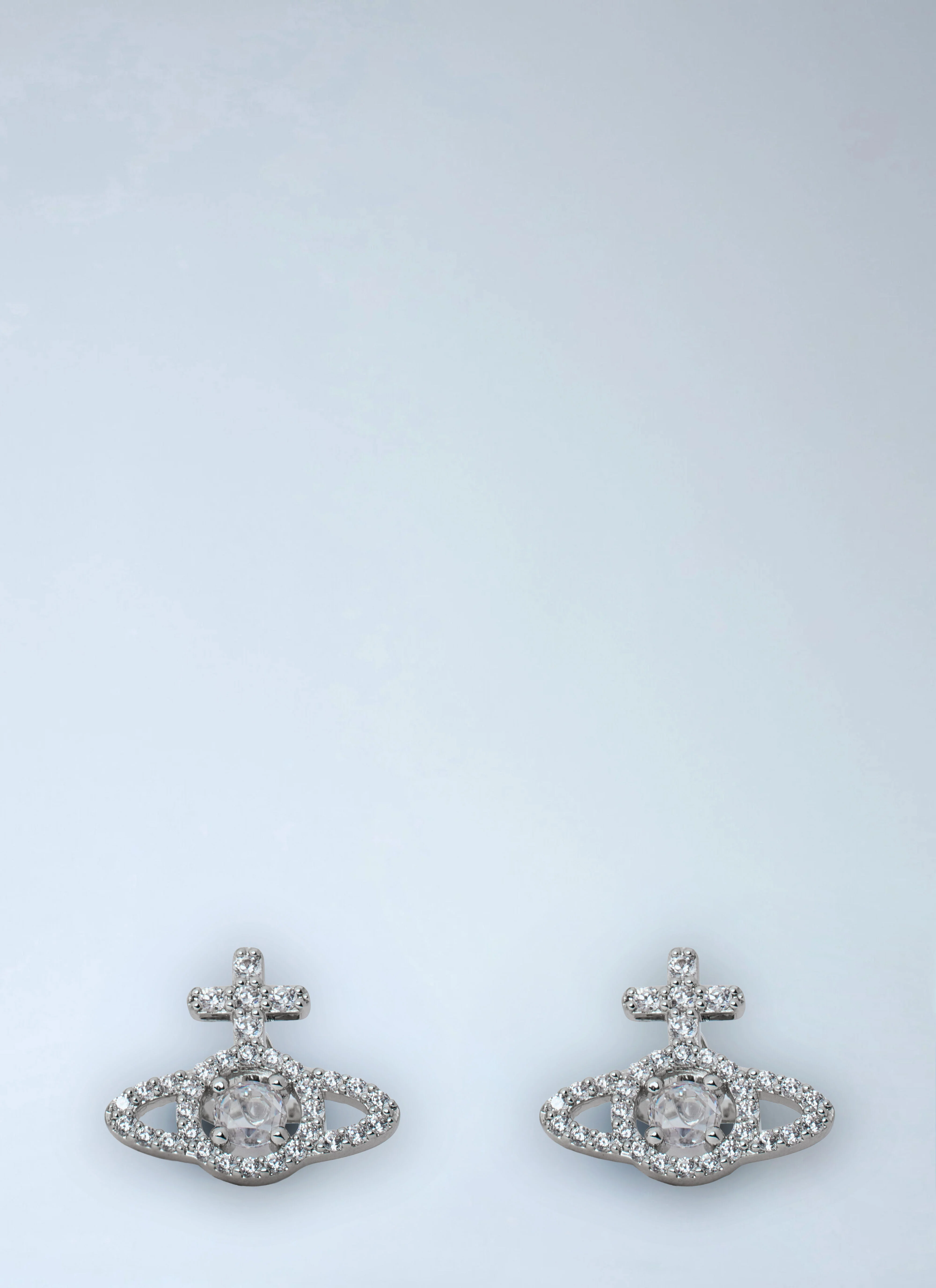 Intricate stud earrings in crystal-embellished metal. - Orb motif design - Push-back fastening - Crystal embellishments - 100% Brass - Color: Silver - Code: 6201038I-02P102-P102