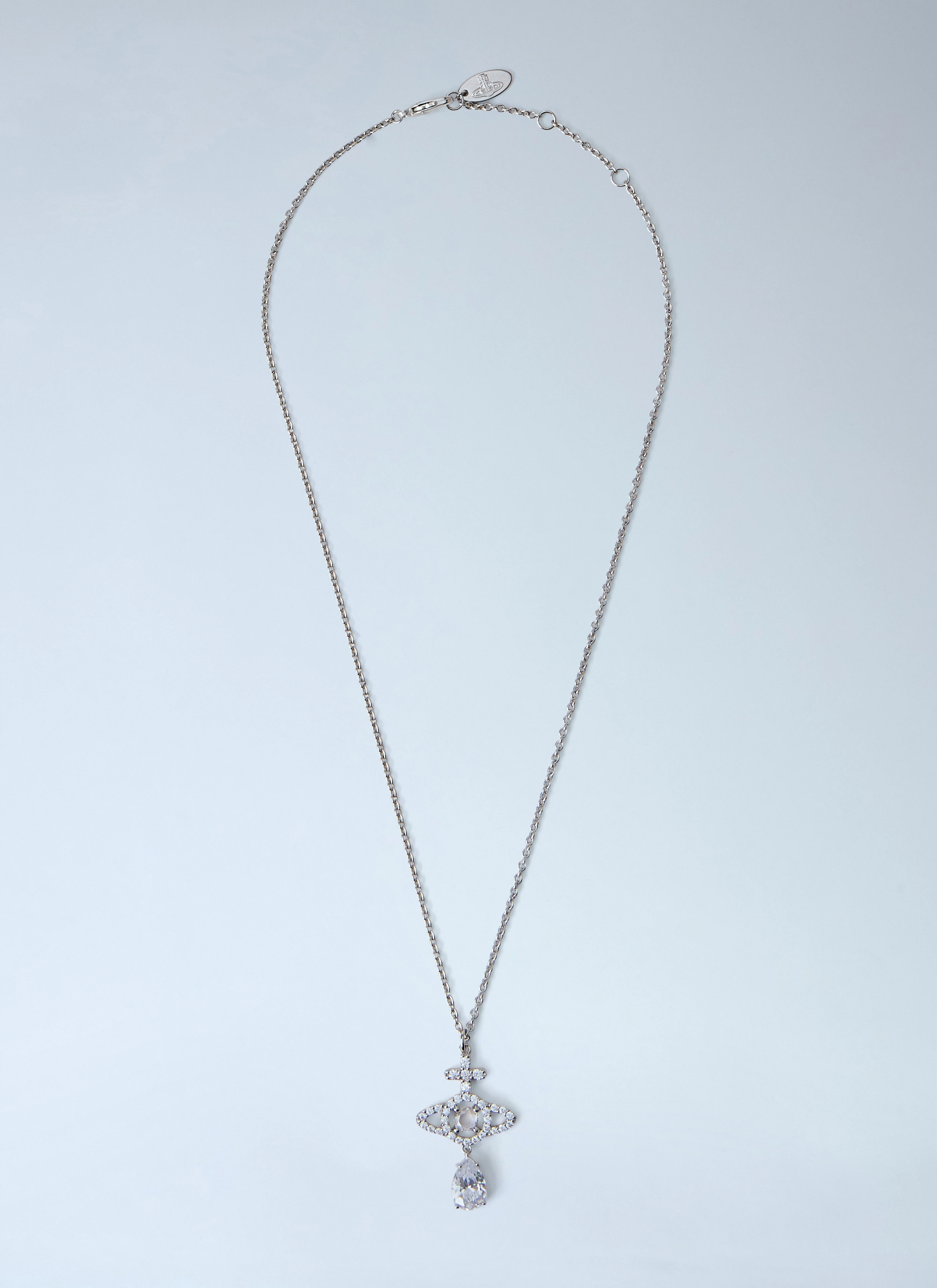 Pendant necklace with crystal embellishments and chain. - Lobster clasp fastening - Crystal pendant design - Adjustable length - 100% Brass - Color: Silver - Code: 630203IB-02P102-P102
