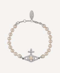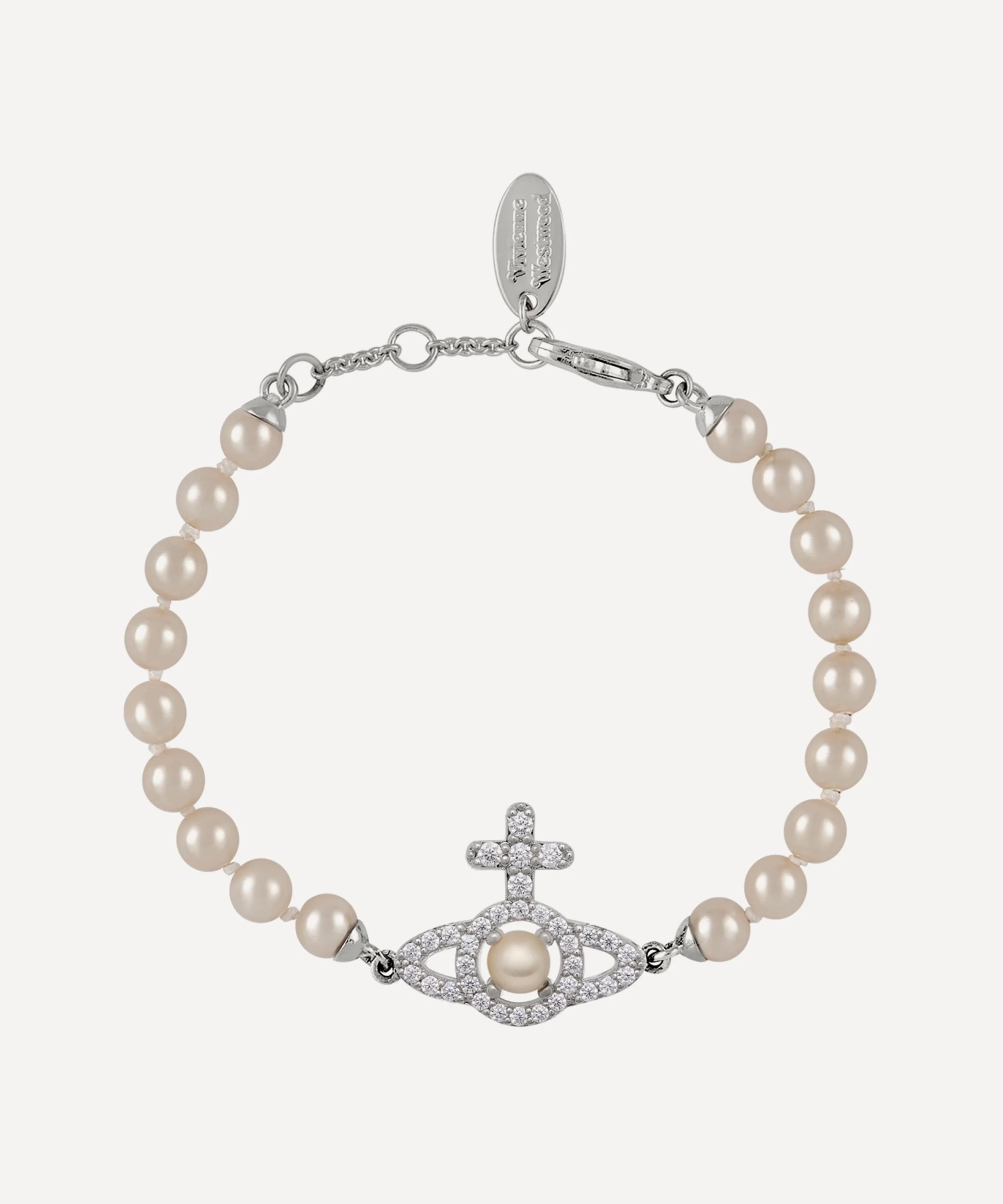 DETAILS Pearl bracelet Platinum-tone brass Glass-based pearls Orb pendant White cubic zirconia Lobster clasp fastening COMPOSITION & SIZE Brass; White Cubic Zirconia Chain L: 17.5cm
