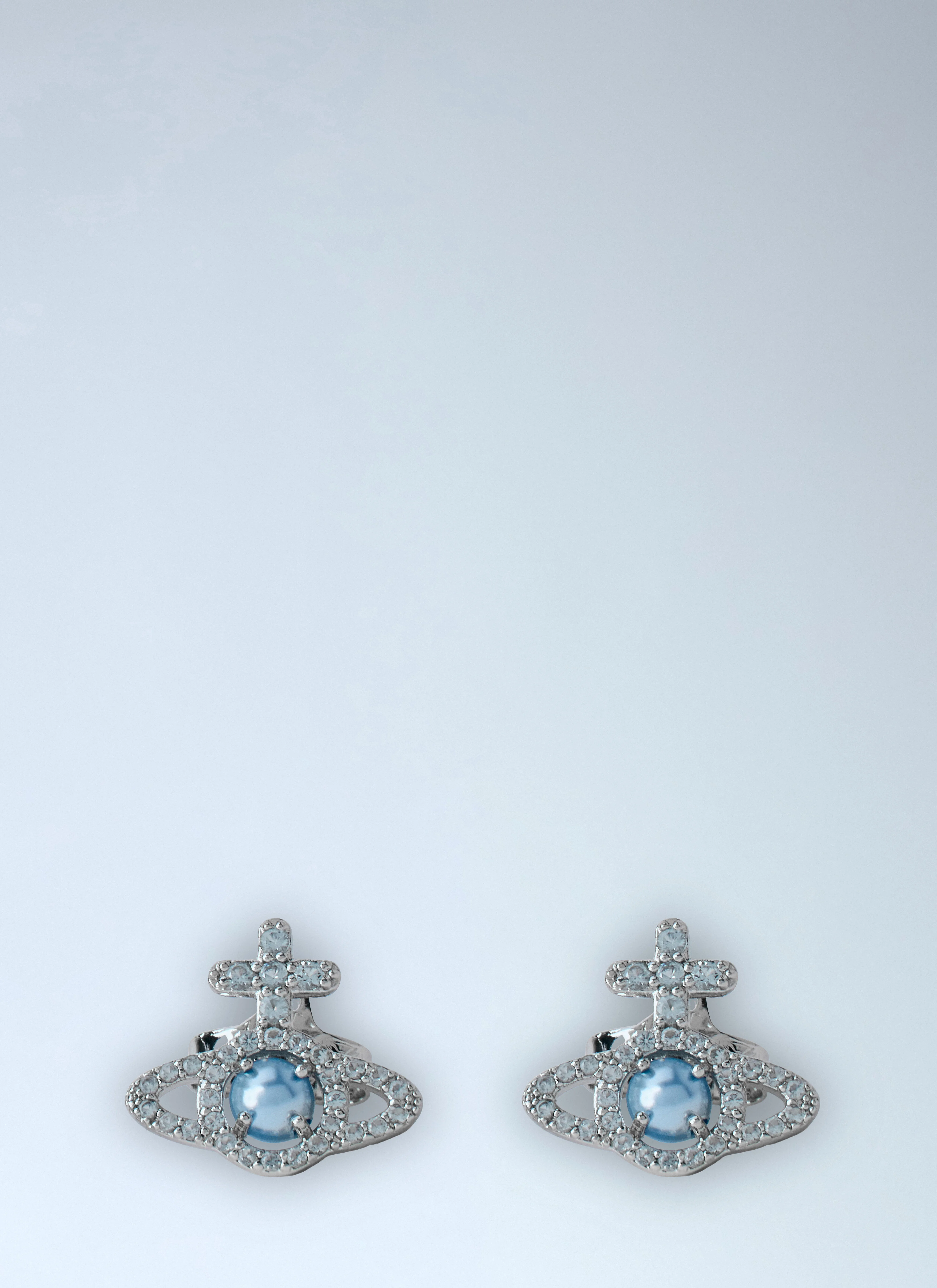 Stud earrings in crystal-encrusted metal with central orb feature. - Stud fastening - Crystal embellishments - Orb design - 100% Brass - Color: Blue - Code: 6203007R-02P718-P718