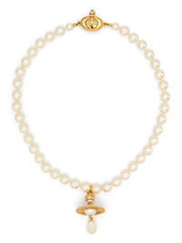 One Row Pearl Drop choker Highlights - Gold-tone/white - Pearlescent finish/polished finish - Faux-pearl embellishment - Crystal signature orb logo pendant - Toggle fastening - Length: 37cm - This piece comes complete with a protective dust bag. Imported SIZE & FIT Model measurements Height 5 ft 9 in(1.75 m) Bust/Chest 31.88 in(81 cm) Hips 34.64 in(88 cm) Waist 24.01 in(61 cm) Measurement Length when open 15.74 in(40 cm) PENDANT LENGTH 1.96 in(5 cm) PENDANT WIDTH 0.94 in(2.4 cm) WIDTH 0.31 in(0.8 cm)