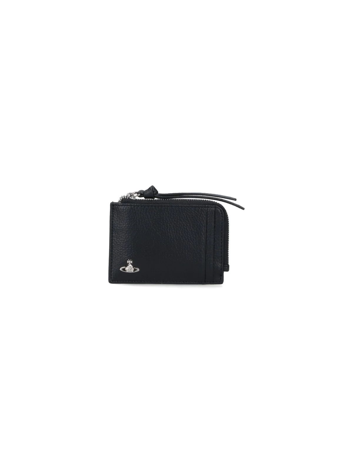 VIVIENNE WESTWOOD 'ORB' CARD HOLDER IN BLACK FABRIC, ONE MAIN TOP ZIP POCKET, SILVER METAL 'ORB' LOGO ON THE FRONT, THREE CARD SLOTS ON THE BACK. PRODUCT INFO PRODUCT CODE 5402000YU S000DN403 COMPOSITION: 100% POLYURETHANE SIZE AND FIT: H 9 X W 10 CM MADE IN: ITALY