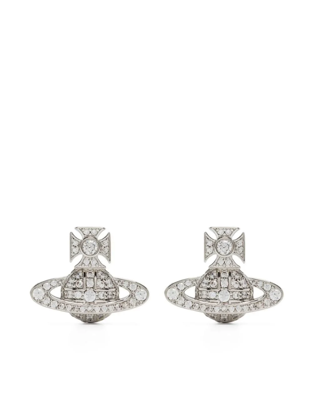 Orb crystal-embellished stud earrings Vivienne Westwood highlights its iconic Orb motif in these stud earrings – it is rendered in a silver tone and encrusted with scores of white crystals, adding another layer of splendour to the British regalia and astronomy-inspired symbol. Highlights - Silver-tone - Stud design - Signature orb plaque detail - Crystal embellishment - Post-back fastening - Polished finish - For pierced ears - These earrings come as a pair. Imported SIZE & FIT Measurement HEIGHT 0.59 in(1.5 cm) Weight (single earring) 3.7 g(3.7 g) WIDTH 0.78 in(2 cm)