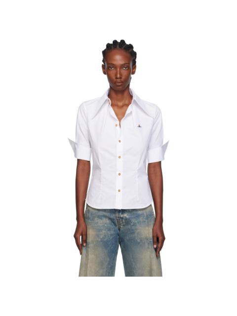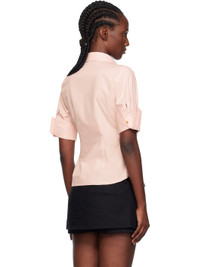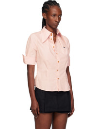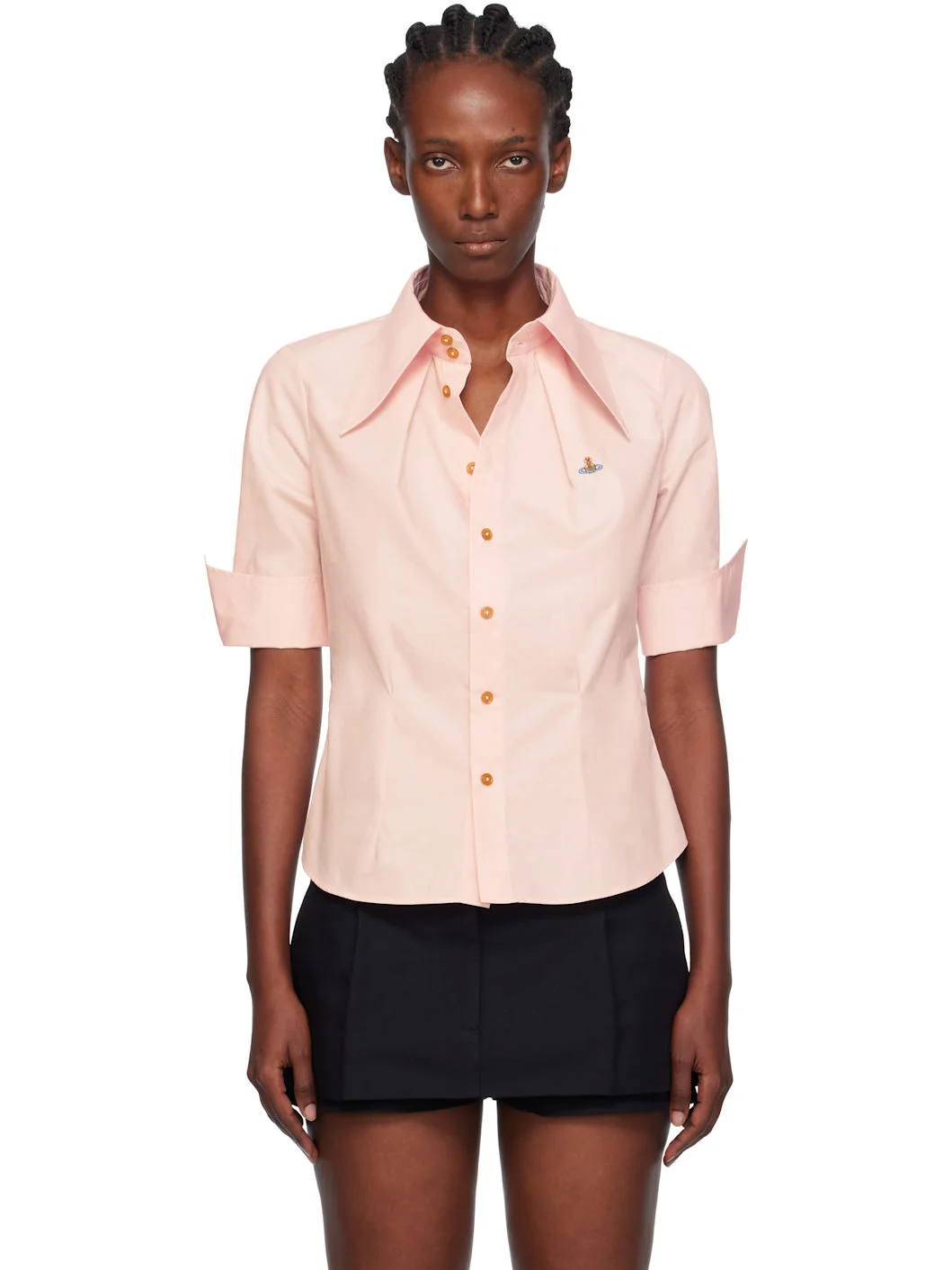 Cotton poplin shirt. · Darts throughout · Pointed collar · Button closure · Embroidered logo at chest · Shirttail hem · Rolled buttoned barrel cuffs Supplier color: Pink Body: 100% cotton. Trim: 70% viscose, 30% polyester. Made in Romania 252314F109002