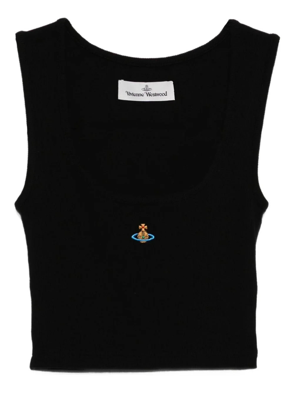 orb-embellished sleeveless top Highlights - Black - Ribbed texture - Sleeveless design - Scoop neck - Small-orb emblem Imported Composition Organic Cotton 95%, Elastane 5% SIZE & FIT Model measurements Height 5 ft 10 in(1.78 m) Bust/Chest 33.46 in(85 cm) Hips 36.22 in(92 cm) Waist 23.22 in(59 cm) Washing instructions Machine Wash