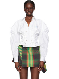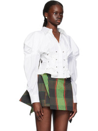 Cotton poplin blouse. · Spread collar · Button closure · Logo embroidered at chest · Lace-up detailing at front · Elasticized trim at dolman sleeves · Pleats at three-button barrel cuffs · Vents at back hem Supplier color: White
