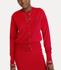 The wool-knit Bea cardigan features a round neckline and fitted body that fastens with brown-coloured buttons to showcase our embroidered orb on the chest - a motif used throughout our brand's history since the 1980s. Code: 1803002P-Y001A-RED - Button fastenings - Round neckline - Ribbed trims - Long-sleeved silhouette - Straight hem - Designed with a roomy body - Made in Italy - Model is 5'9/177cm and is wearing a size XS COMPOSITION - 70% Merino Wool - 30% Silk