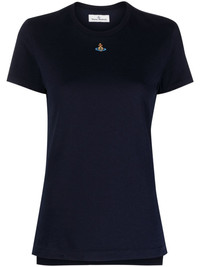 Orb-embroidered short-sleeve T-shirt Highlights - Midnight blue - Cotton - Soft jersey - Signature orb logo embroidery - Crew neck - Short sleeves - Step hem Made in Italy Composition Cotton 100% SIZE & FIT Model measurements Height 5 ft 10 in(1.78 m) Bust/Chest 32.67 in(83 cm) Hips 35.43 in(90 cm) Waist 23.22 in(59 cm) Measurement BUST 33.85 in(86 cm) LENGTH 25.19 in(64 cm) SLEEVE LENGTH 5.9 in(15 cm) Shoulder Width 13.77 in(35 cm) FittingInformation Designed for a slim fit that sits just away from the body offering a close yet comfortable fit Made from a midweight non-stretch fabric, this piece offers minimal elasticity when worn This piece fits true to size – take your usual size Washing instructions Machine Wash