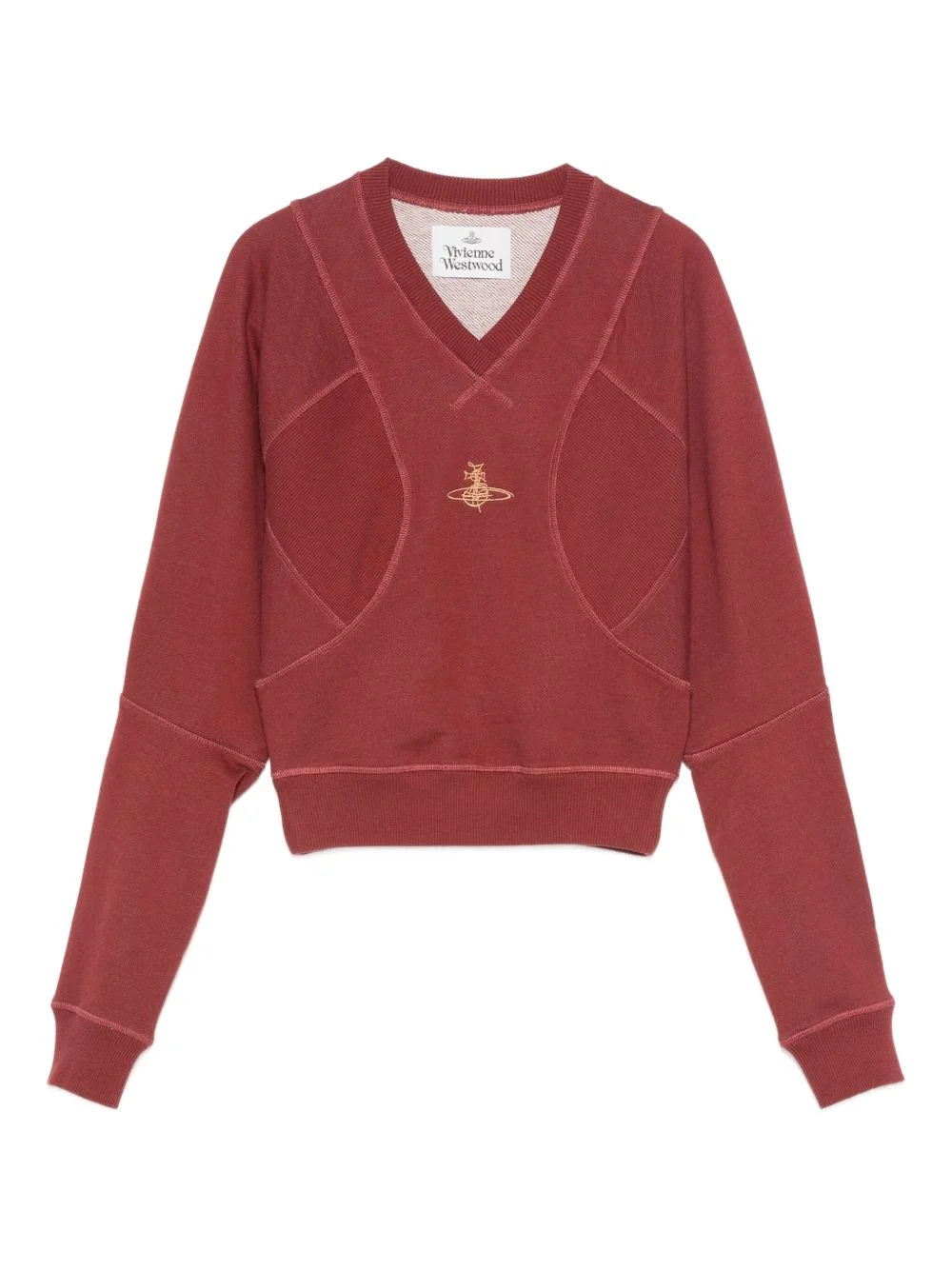 Orb-embroidered V-neck sweater Highlights - Brick red - V-neck - Long sleeves - Embroidered orb - Panelled design Imported Composition Organic Cotton 100% SIZE & FIT Model measurements Height 5 ft 9 in(1.75 m) Bust/Chest 34.64 in(88 cm) Hips 36.61 in(93 cm) Waist 26.37 in(67 cm) Washing instructions Read Manufacturer Guidelines