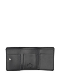 Orb plaque trifold wallet Highlights - Black - Leather - Concealed press-stud fastening - Silver-tone signature orb plaque detail - Tri-fold design - Front flap pocket - Debossed internal logo - Internal note compartments - Internal card slots Imported Composition Outer: Leather 100%