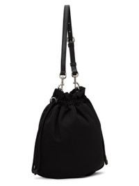 Recycled polyester twill shoulder bag in black. · Detachable and adjustable shoulder strap · Logo hardware at face · Drawstring closure · Detachable drawstring coin pouch at interior · Logo hardware at coin pouch · Twill lining · Logo-engraved silver-tone hardware · H12.25" x W11" x D1" Supplier color: Black