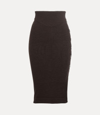Our Pamela skirt features a fine-knit woollen silhouette, complete with a fitted waistband that falls into a midi-length finish. As part of our new range, the piece receives letter-engraved mother-of-pearl buttons on the left-hand side of the design, enhanced by an embroidered orb at the back. Code: 1802001F-Y002M--BROWN - The model is 5'11/180cm and is wearing a size 40. COMPOSITION - 100% Virgin Wool