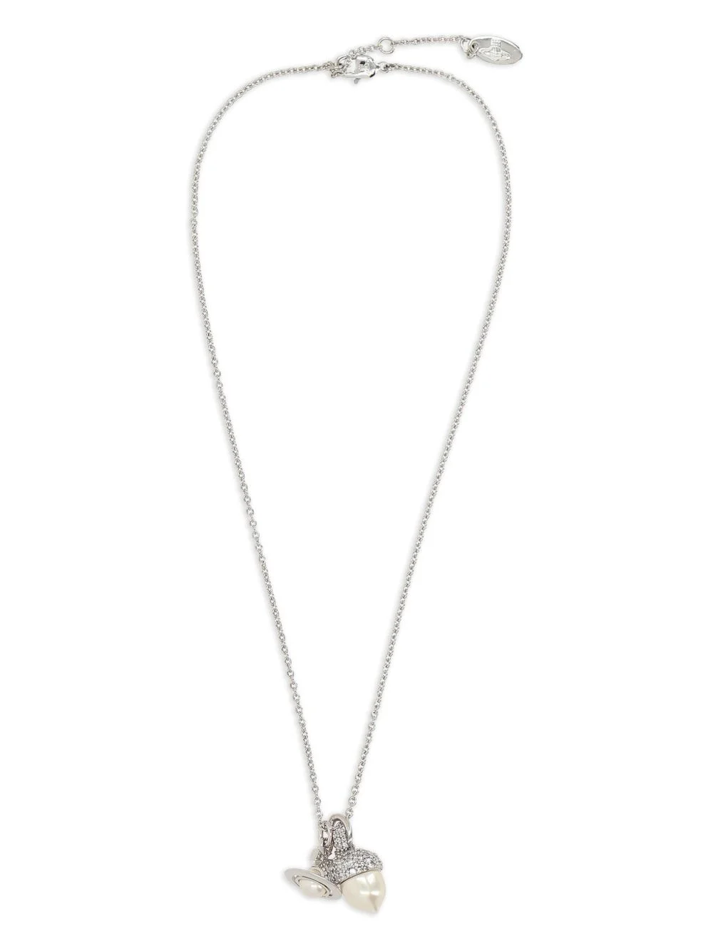 pearl-pendant necklace Highlights - Silver-tone - Pearl pendant - Crystal embellishment - Lobster clasp fastening - Adjustable length - Logo charm Imported