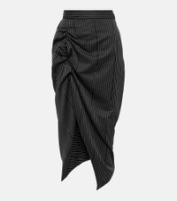 Pinstriped wool and cotton midi skirt