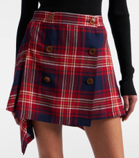 Vivienne Westwood’s designs continue to exemplify the disruptive energy of its late founder – fashion’s original punk pioneer. This miniskirt features buttons at the front, an asymmetrical hem, and a charming all-over plaid pattern. Product Details - Material: 75% viscose, 25% wool - Care instructions: dry clean - Made in Italy - Designer color name: Burgundy Blue Check - Item color: red, blue - Lining: 100% viscose - Closure: buttoned front - Item number: P01086345 Size & Fit - True to size - Elasticated waist - Non-stretchy fabric - The model seen in the picture is 178cm-5'10" and wearing a size IT 40