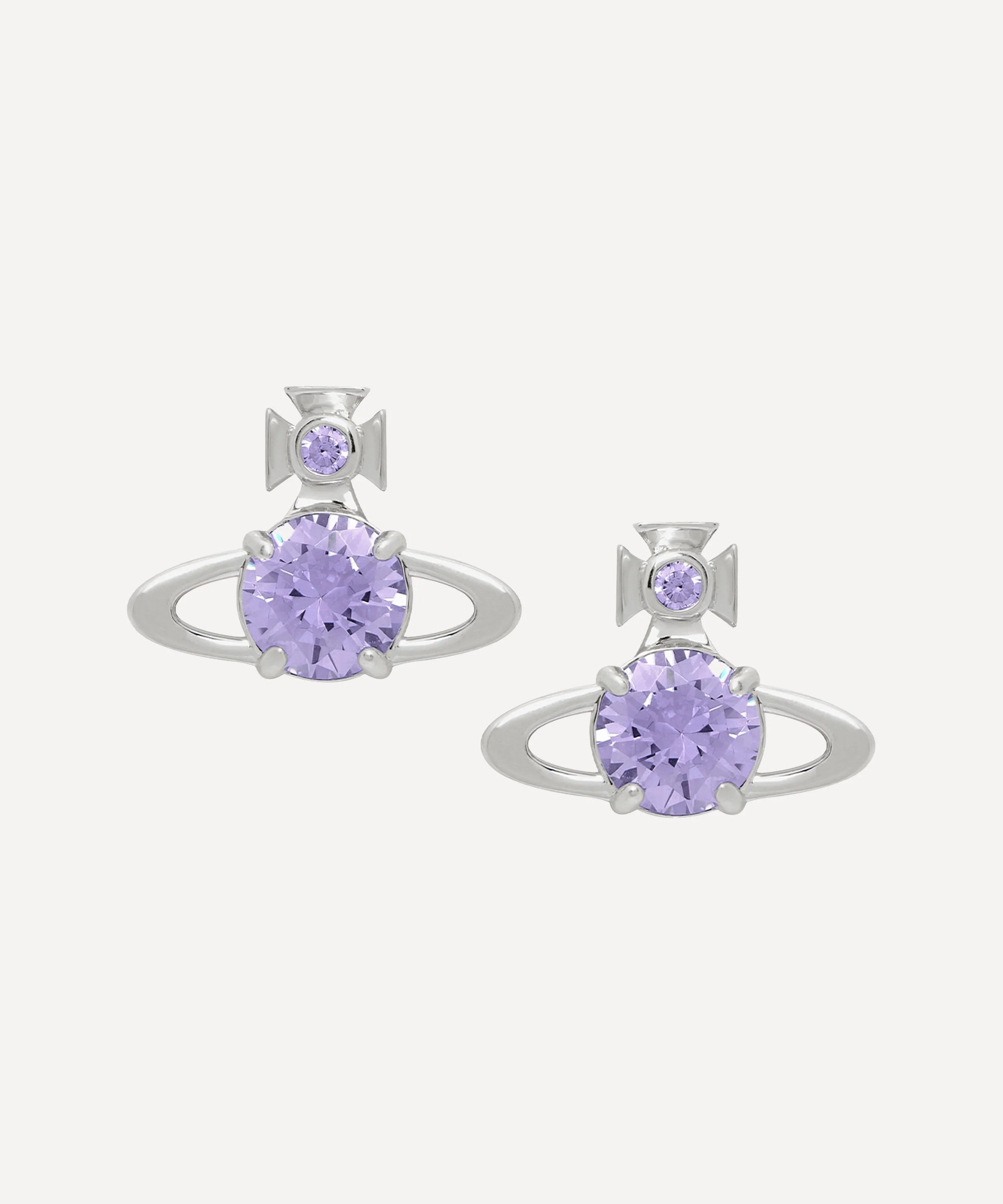 DETAILS Stud earrings Platinum-tone brass Orb design Lavender-coloured cubic zirconia Post and butterfly fastening COMPOSITION & SIZE Brass; Cubic Zirconia H: 1.5cm, W: 0.49cm