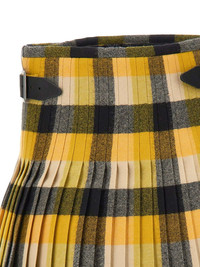 pleated buckle mini skirt Highlights - Yellow - Pixel-check pattern - Pleated construction - Side wrap closure - Silver-tone buckles - Kilt design Made in United Kingdom Composition Wool 100% Washing instructions Read Manufacturer Guidelines