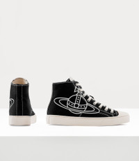 Set on a locally sourced rubber outsole, the High-top plimsolls are made from a recycled cotton upper and feature a woven label on the tongue. High-top design Lace-up fastening Top cap Top stitching Woven label on tongue Lined orb motif Code: 75010001MW0004N401 Details & Features Do not allow your product to get wet or damp. Store in the provided care bag, in a dry and well-ventilated place.