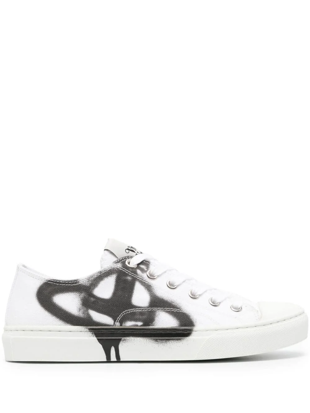 Plimsoll 2.0 canvas sneakers Highlights - White - Recycled cotton/recycled polyester - Canvas - Round toe - Rubber toecap - Logo patch at the tongue - Signature orb graffiti logo print - Branded insole - Flat rubber sole - Front lace-up fastening Imported Composition Outer: Recycled Cotton 50%, Recycled Polyester 50% Lining: Fabric 100% Sole: Rubber 100% SIZE & FIT Measurement HEEL 0.98 in(2.5 cm) Sole height 0.78 in(2 cm)