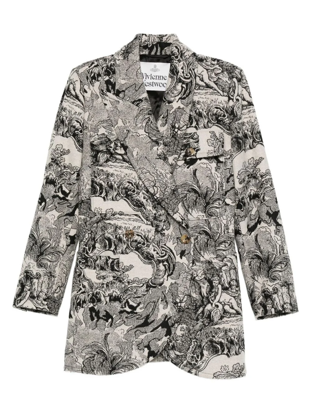 double-breasted printed coat Highlights - Cream - Black print - Double-breasted fastening - Long sleeves - Curved hem Made in Italy Composition Outer: Virgin Wool 82%, Polyamide 18% Lining: Viscose 100%, Cotton 100% Washing instructions Dry Clean Only