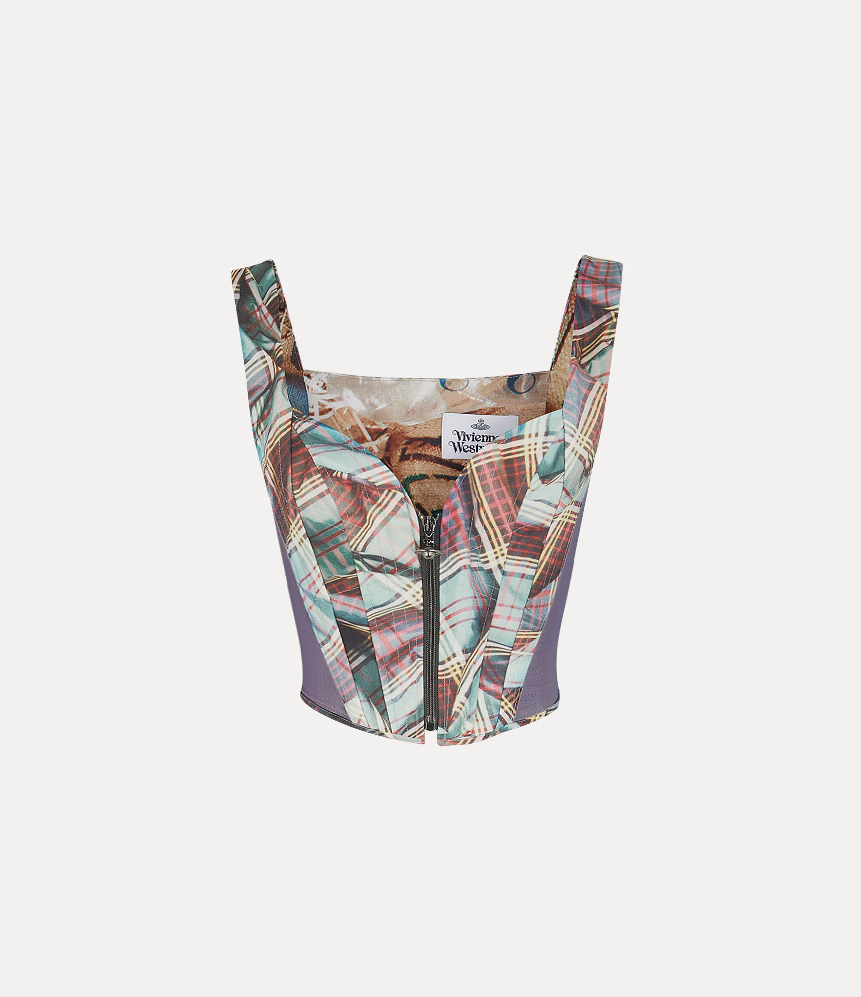 Our Classic corset has been refreshed with the house's revised MacAndy tartan pattern, a nod to Vivienne Westwood's husband and design collaborator, Andreas Kronthaler. The design receives mesh panels on either side, finished with an 18th-century-inspired silhouette that fastens with an orb zipper. Code: 1503003S-W00M7--MULTI-TARTAN - Classic basque hem - Internal boning - Wide straps - Woven label - Asymmetric hemline - Made in Italy - Model is 5'11/180cm and is wearing a size 40 COMPOSITION - 100% Wool