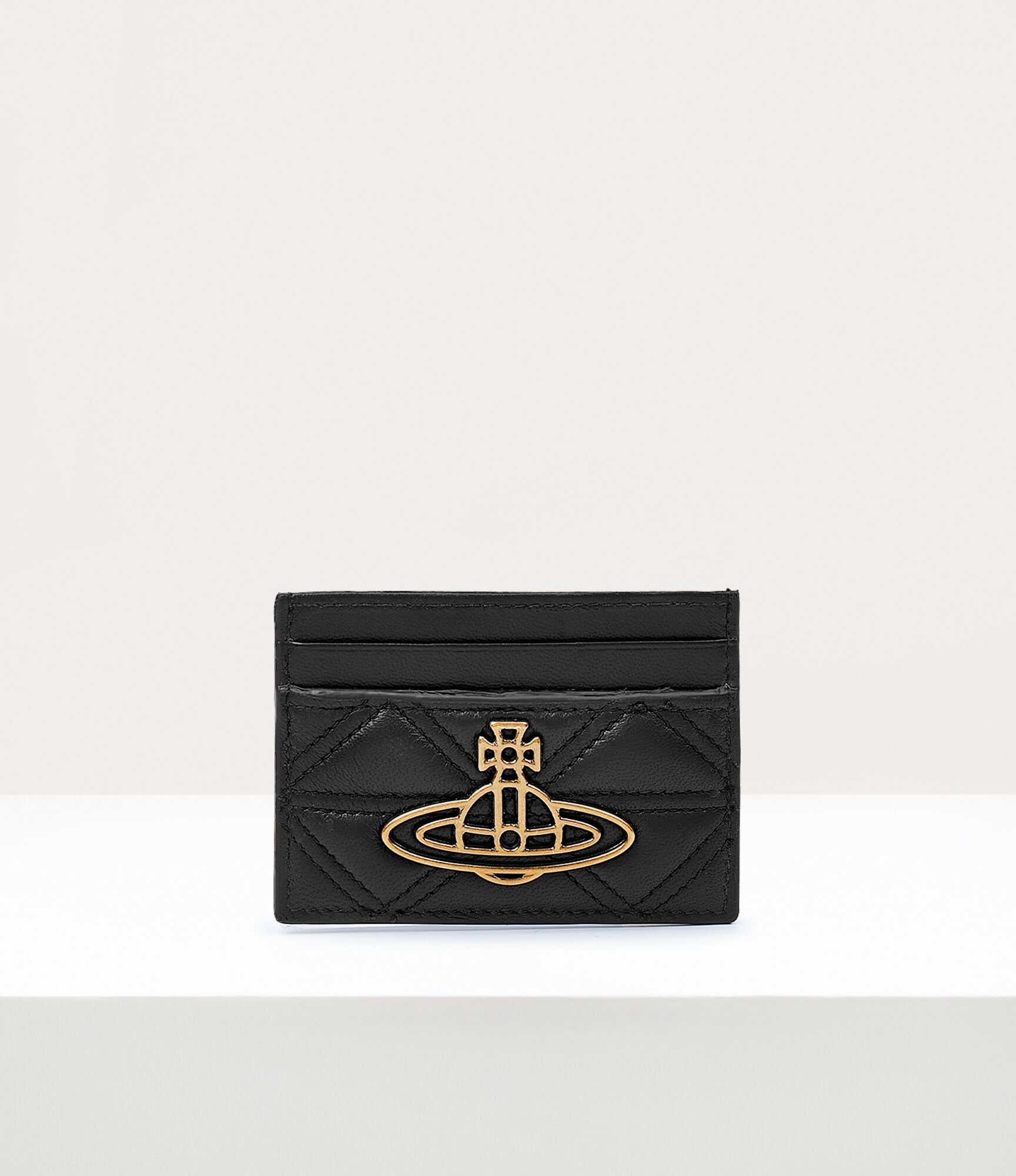 The Quilted card holder features our archival 'Harlequin' quilting, an artwork first introduced in our Autumn-Winter 1989 'Voyage to Cythera' collection. This rectangular style features two card slots on both sides of the design and our classic orb motif at the front panel, a symbol developed by Vivienne Westwood in the 1980s. Code: 8050889711377 - Polished plating - Tonal stitching - Slim design - Lightweight - Made in Italy - Measurements: height 7cm, width 10cm COMPOSITION - 100% Leather