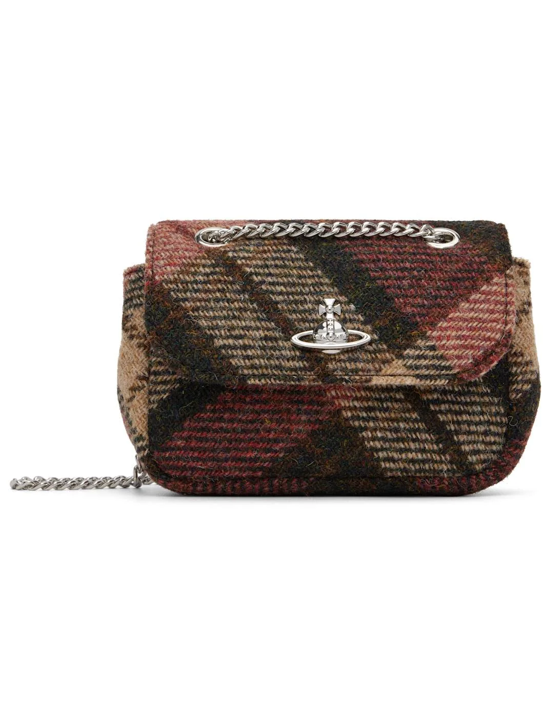 Hand-woven virgin wool Harris Tweed® shoulder bag. · Check pattern throughout · Sliding curb chain crossbody strap · Logo hardware at face · Logo patch at back face · Magnetic press-stud flap · Canas lining · H3.5" x W6" x D2.25" Supplier color: Light check Wool. Made in Italy 252314F048046