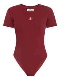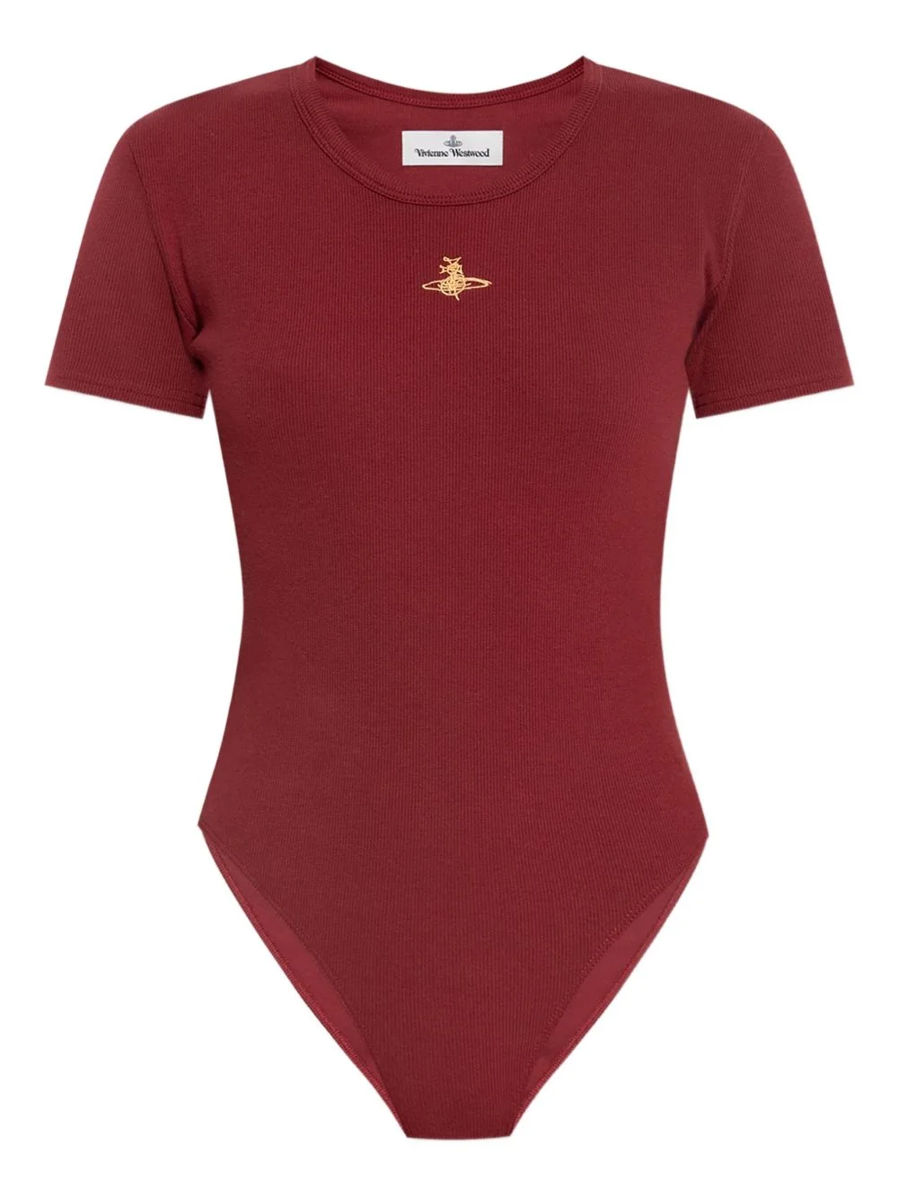 Orb-embellished ribbed bodysuit Highlights - Dark red - Ribbed texture - Short sleeves - Round neck - Close-fitting - Signature orb emblem Imported Composition Organic Cotton 95%, Elastane 5% Washing instructions Read Manufacturer Guidelines