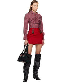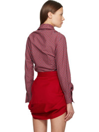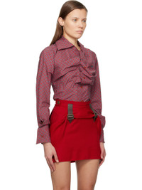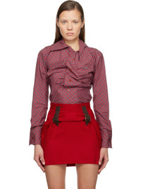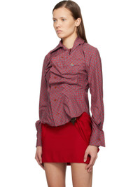 Organic cotton poplin shirt. · Check pattern throughout · Asymmetrical construction · Modified spread collar · Gathering at button closure · Logo embroidered at chest · Darts at front and back · Shirttail hem · Buttoned barrel cuffs Supplier color: Red 100% cotton. Made in Romania 252314F109008