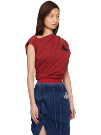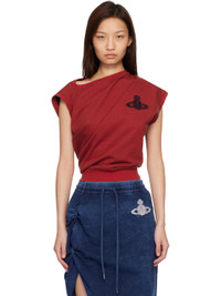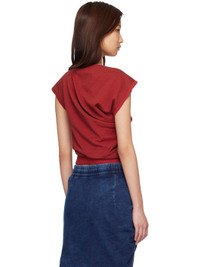 Organic cotton French terry top. · Draping throughout · Asymmetrical construction · Rib-knit boatneck, hem, and cuffs · Logo applique at chest · Cap sleeve Supplier color: Red Body: 100% cotton. Trim: 95% cotton, 5% elastane. Made in Turkey 261314F110038