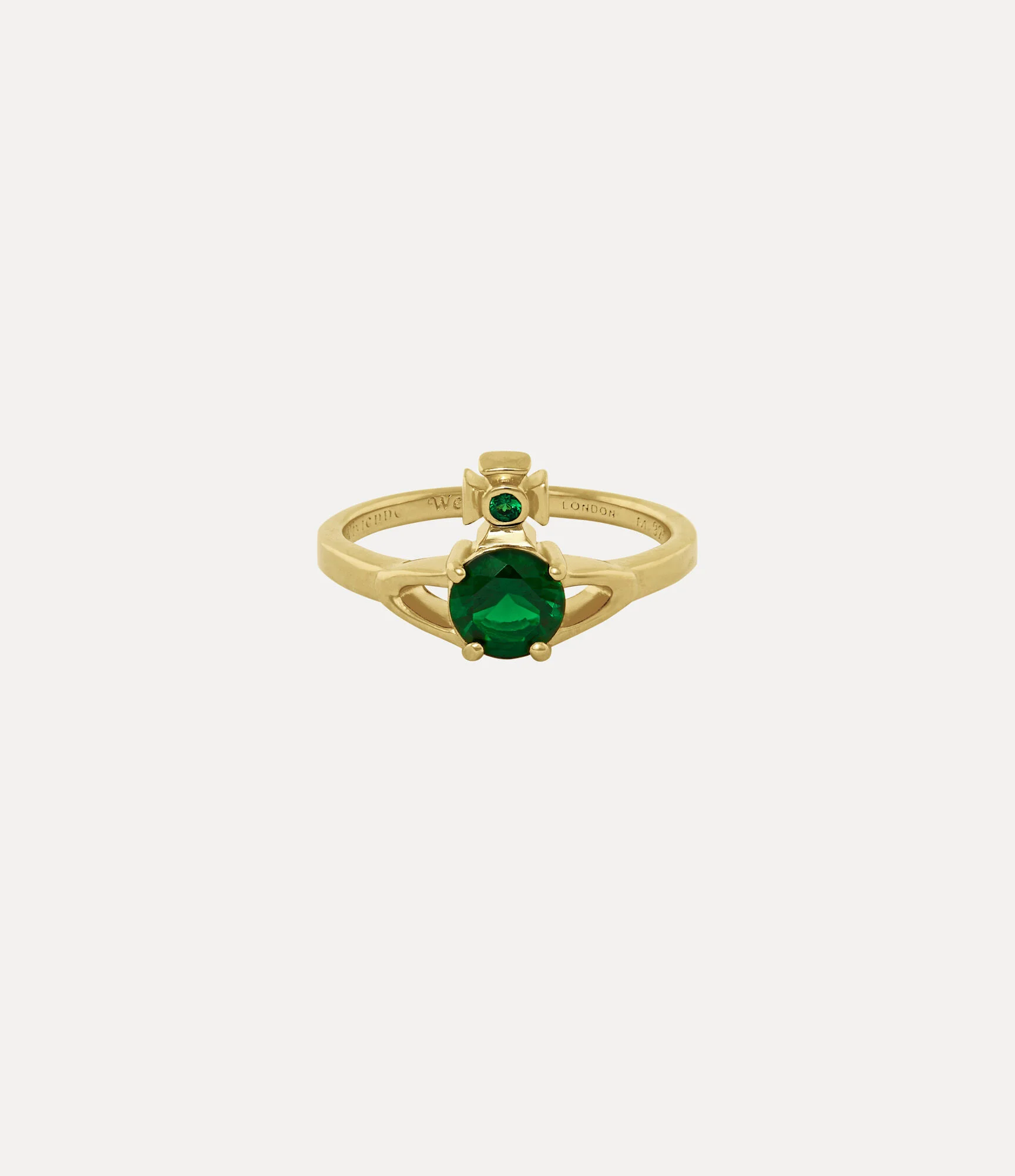 Our Reina Petite ring is offered in recycled silver, complete with a glistening gold-tone finish and green crystal embellishments. The piece features an orb shaped face, which represents tradition, encircled by the celestial rings of Saturn, symbolising the future. Code: 64040006-01R245--GOLD-EMERALD-CZ - Features crystal details - Delicate band - Polished finish - Cut-out around Saturn's ring - Prong setting - Engraved inner band - Weight: 2.11g - Orb height 1.2cm, width 1.35cm COMPOSITION - Main material: 100% recycled silver - Cubic zirconia crystals - Gold-tone plating - We plate all our sterling silver products, as this prevents tarnishing and increases durability.