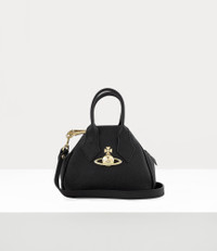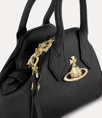 Made from Saffiano black leather, the Saffiano Mini Yasmine bag features a top zip fastening. Finished with the metal line orb on the front panel, it is fitted with a detachable cross-body strap. Material 100% Cow Leather Code: 45030009L001NN403 Details & Features H 11cm x W 14.5cm x D 6.5cm Zip fastening Handle height measures: 6cm Strap measures 127cm at full extension Metal orb emblem