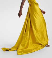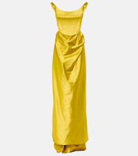 This eye-catching gown from Vivienne Westwood combines refined structure with artful draping. The style is made from lustrous yellow satin and features a corseted bodice that falls to an elegantly draped skirt. Product Details - Built-in bustier - Care instructions: dry clean - Closure: zipped back, hook fastening - Material: 57% acetate, 6% elastane, 37% polyamide - Designer color name: Yellow - Made in the UK - Lining: partially lined, 100% viscose - Item number: P00763822 Size & Fit - True to size - Internal boned corset for support - Cinched waist - Non-stretchy fabric - The model seen in the picture is 178cm-5'10" and wearing a size UK 8